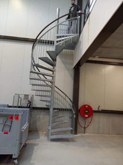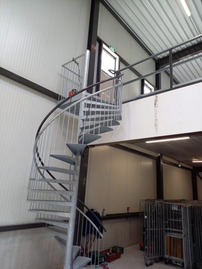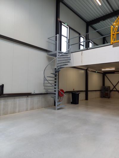 De trap wordt gebruikt om in de bedrijfsruimte naar de eerste verdieping te komen.